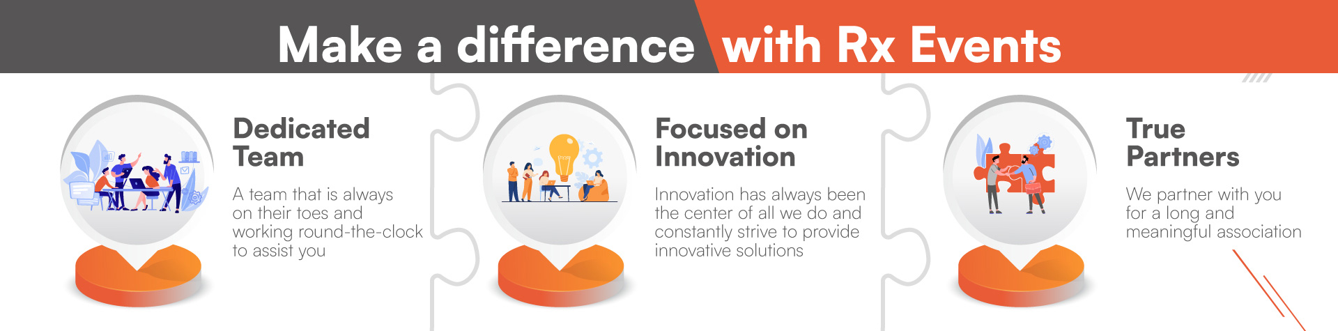 Rx Events is an emerging best-in-class event management consultancy with rich expertise in conceptualising and organising medical conferences, CMEs, meetings and extensive pharmaceutical event management. Our team with varied experience, understands your goals to drive an impactful and result-oriented successful event. We believe in providing a competitive edge to our clients by paying attention to every detail and implementing the best program practices.